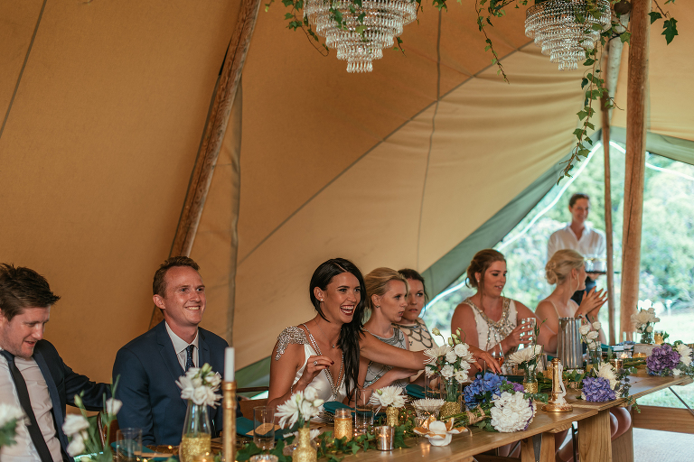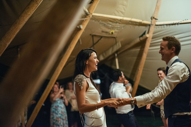 Dani stole hearts and breath as she floated down the aisle in a stunning Johanna Johnson creation and I think we all had tears in our eyes, a short and sweet ceremony full of plenty of laughter and banter. Guests enjoyed lawn games and roaming the grounds while we snuck away to a couple of local spots for portraits and I have to say everyone was such a good sport about getting wet, sandy and a couple of scrapes and bruises in the process. We returned to the reception held in their gigantic tipee on Mike’s parents lawn, lit and decked out with fairylight for an evening of food, emotion, and dancing.