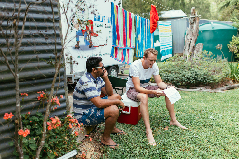 I was blown away seeing the bouquets for the bridal party – mostly because Dani and her girls made them all themselves from local wildflowers! Talk about kiwi ingenuity. They also did all of the floral styling for the ceremony and reception, busy bees! I was lucky enough to have my good friend and talented photographer Kate Wark second shooting for me so she spent documenting Mike & the guys swimming in the creek, putting in some last minute hard work and having a few beers. The boys really do have it easier on a wedding morning!