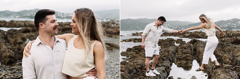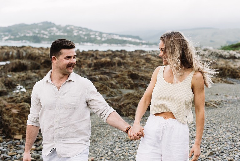 I had the most gorgeous evening with Jess & Tom recently down in Wellington for their engagement session. If you know Wellington – you’ll know it’s without a doubt the windiest place in New Zealand! It certainly didn’t disappoint us on this evening! These two braved it all as we wandered one of their regular haunts – the astounding Whitireia. My cheeks hurt from laughing with Jess & Tom and as per usual I ended up shooting way longer than anticipated! They get married later in the summer and you can probably tell from their amazing energy that it’s for sure going to be an epic day.
